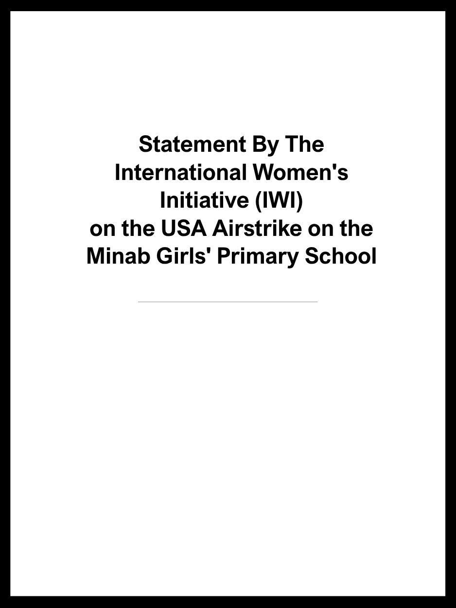 The International Women's Initiative (IWI) condemns in the strongest possible terms the horrendous airstrike on the Shajareh Tayyebeh Girls' Primary School in Minab, southern Iran, on 28 February 2026. According to local official reports and international news agencies, the strike directly hit the school while classes were underway, killing at least 165 people—the vast majority of them girls between the ages of 7 and 12, along with their teachers.